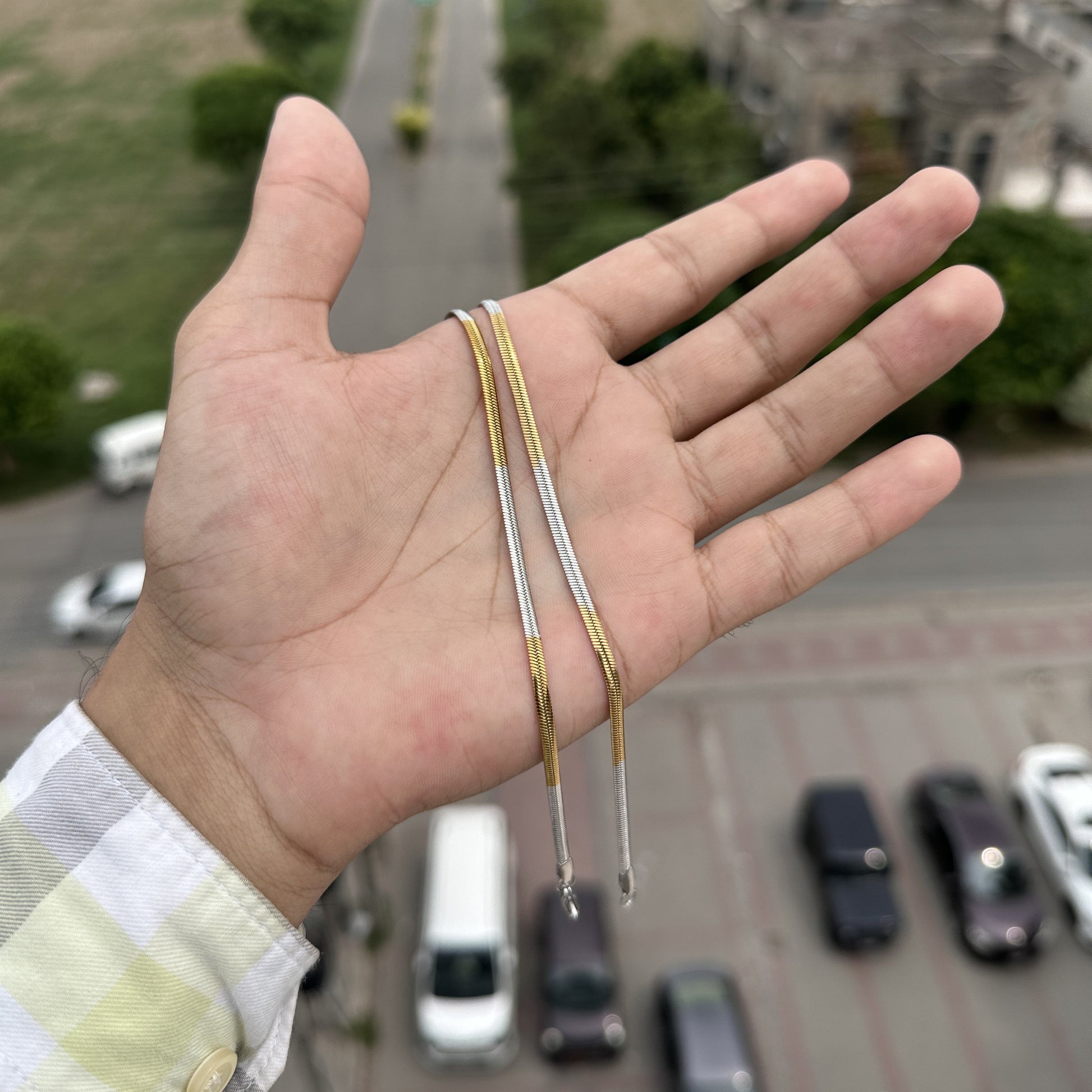 Dual-Tone Sleek-Snake Chain – Half Gold & Half Silver